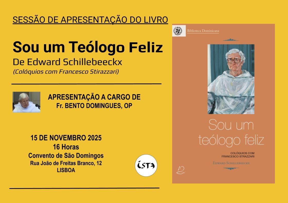 convida os interessados para a sessão de apresentação do livro "Sou um Teólogo Feliz", de Edward Schillebeeckx (Colóquios com Francesco Strazzari). A apresentação estará a cargo do Fr. Bento Domingues, OP. Será uma excelente oportunidade para aprofundar o pensamento de um dos mais importantes teólogos do século XX, numa conversa moderada por um dos mais distintos intelectuais dominicanos contemporâneos.